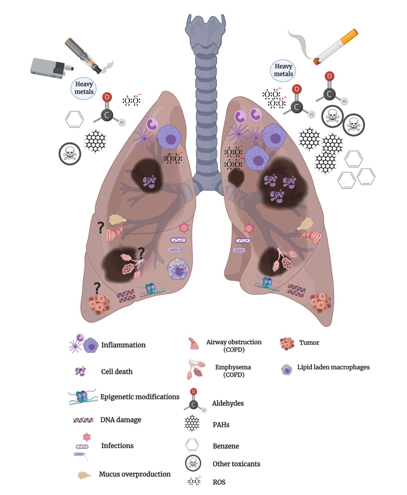 Damp inademen kan ontstekingsreacties veroorzaken in de longen en op den duur chronische luchtziekten zoals COPD. De precieze risico’s moeten nog verder onderzocht worden.